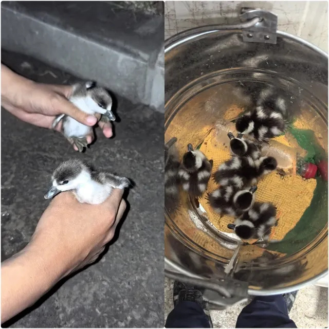 六月的呼伦贝尔,星光倾泻在广袤的草原。6月18日晚,金新化工厂区氮肥装置尿素界区内,工艺四班员工在夜班例行巡检时,被六团毛茸茸的身影挡住了去路—六只赤麻鸭幼鸟正蜷缩在夜露中瑟瑟发抖,脆弱的身影与宏大的工业背景形成了鲜明的对比。班组人员及时伸出援助之手,将它们带到了安全地带。