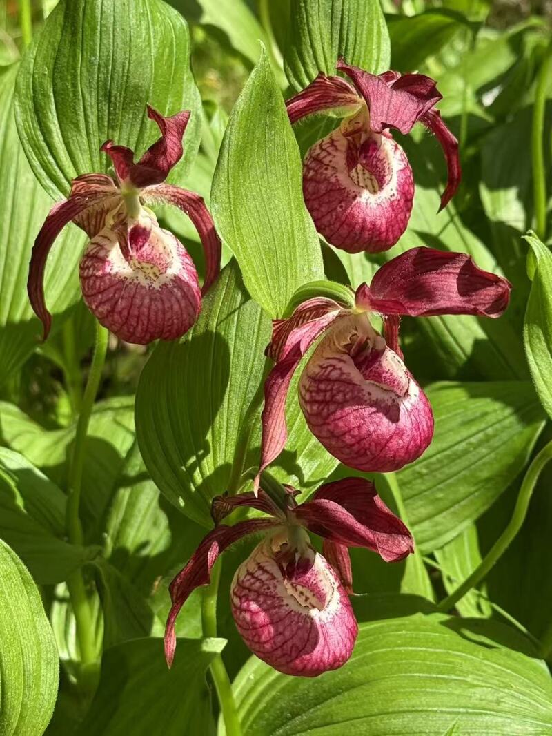 考察中,团队凭借专业能力接连发现国家二级保护植物大花杓兰、紫点杓兰。其中大花杓兰花朵硕大艳丽,多隐匿于林下、林缘地带,对生长环境要求苛刻;紫点杓兰植株精巧,花瓣点缀淡紫红斑点,常扎根于林下灌丛间。两种杓兰属植物的发现,丰富了保护区植物名录,为兰科植物研究提供了重要样本。