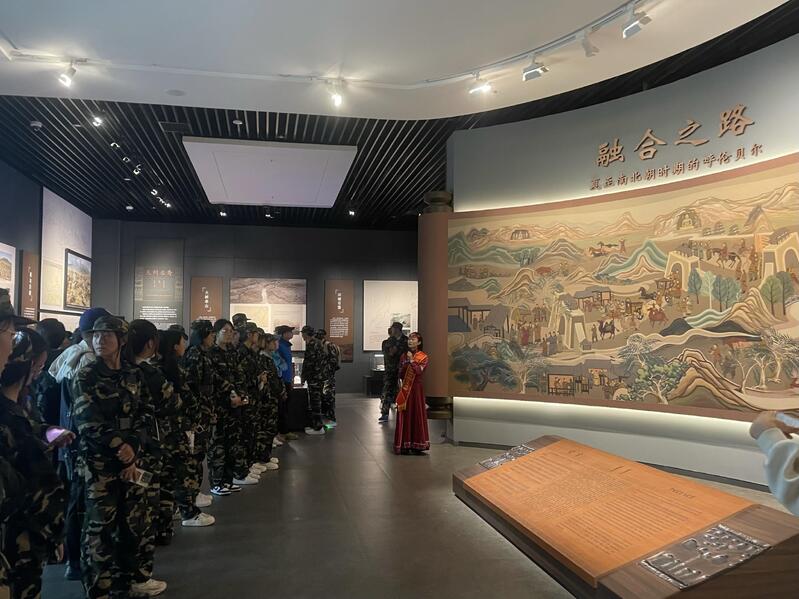 时间溯回,志愿讲解员带领新生走进“夏至南北朝时期的呼伦贝尔”展厅,娓娓讲述着东胡、乌桓等北方民族的兴衰变迁,鲜卑“融合之路”的发展历程和中华民族多元一体格局的早期形成脉络。